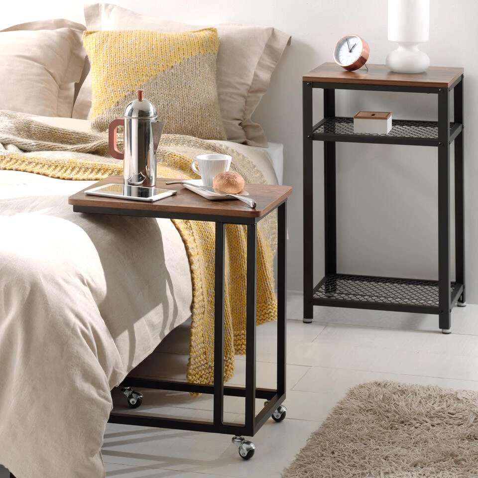 Praktisch, esthetisch en veelzijdig, dat zijn drie zeer specifieke kenmerken van deze bijzettafel! De wielen maken het gemakkelijk om zich te verplaatsen. Het is echter ook mogelijk om de wielen te vervangen door de meegeleverde poten. Door de afmetingen van 50×35 cm en het draagvermogen van 25 kg kunt u er uw favoriete hapjes, tijdschriften of boeken op plaatsen. Uw laptop is ook welkom op deze bijzettafel!