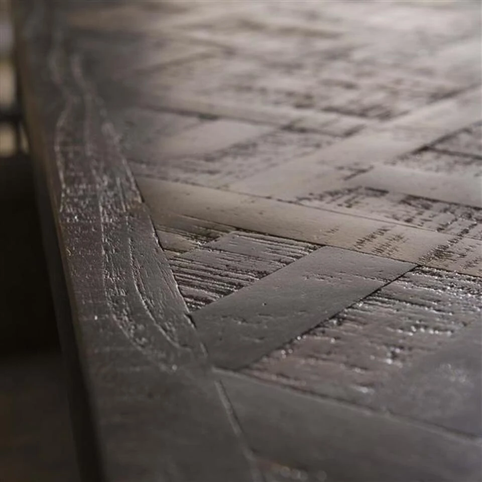 Het blad van Bartafel Cleo is gemaakt van Teakhout en is bruin afgewerkt. Meubels van teak staan bekend om hun goede staat, zelfs na jarenlang gebruik. Teak is een duurzame en vettige houtsoort wat nauwelijks splintert. Hierdoor blijft het meubel zeer lang mooi. Het blad is middels visgraatstructuur opgebouwd.Â