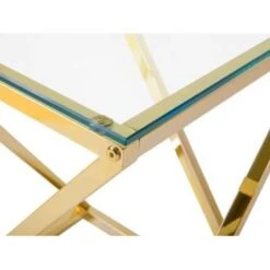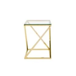 Elegante bijzettafel met een helder glazen blad. Deze bijzettafel vertegenwoordigt een perfecte combinatie van glamour en minimalistische invloeden. Het tijdloze ontwerp maakt het perfect voor zowel minimalistische, industriële als meer traditionele interieurs. Het stuk bestaat uit een vierkant, gehard glazen blad en een robuuste metalen voet. Het werkt geweldig als nachtkastje of bijzettafel en geeft een stijlvol accent in elke woonkamer, slaapkamer of hal.