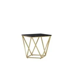 Geometrische, zwarte bijzettafel in marmerlook. Deze bijzettafel met middeneeuwse invloeden is perfect om de inrichting van elke moderne kamer te verankeren. Het geometrische ontwerp met het schuine, metalen frame geeft een gevoel van lichtheid en extra ruimte. Met een MDF-tafelblad met een gemarmerde afwerking straalt de tafel een luxe uitstraling uit, een perfect middelpunt voor alle vintage en glamoureuze interieurs.