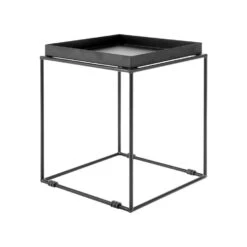 Moderne bijzettafel van metaal. Deze salontafel is een functioneel en decoratief stuk dat perfect past in elke stijl, modern of traditioneel, naast een bank of als bijzettafel in de hal. Dit tafeltje heeft een onderstel waardoor je drankjes, eten of decoratieve elementen er niet af kunnen vallen. Geef je interieur een modern tintje met deze salontafel.