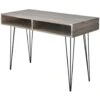 Elegant bureau in Scandinavische stijl. Simpel, elegant, modern, ongecompliceerd, functioneel – dat is wat dit adembenemende, zwarte bureau onderscheidt. Boeken en accessoires kunnen decoratief op het tafelblad worden geplaatst en de bijbehorende lade is een perfecte opbergplaats voor kleinere gebruiksvoorwerpen en kantoorartikelen. De slanke, natuurlijke poten van grenenhout ronden de minimalistische look perfect af.