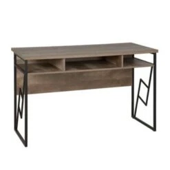 Stijlvol bureau in industrieel ontwerp. Een speciaal bureau dat zorgt voor meer stijl en efficiƫntie op het werk! Drie praktische vakken laten alle mappen, mappen of schoolbenodigdheden snel verdwijnen en creƫren een ordelijke leeromgeving. De combinatie van hoogwaardig gelamineerd spaanplaat met houteffect en stevig glanzend metalen frame in zwart ziet er luxe uit en past in alle kantoor- en werkruimtes.