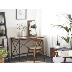 Bureau industiriƫle look met metalen poten . Een minimalistisch bureau is precies wat je nodig hebt voor je thuiskantoor. Het past het beste bij industriƫle en Scandinavische interieurs, maar past ook bij andere stijlen. Met een MDF-blad en stevige metalen poten is het een geschikt stuk om op een laptop te werken of op papier te krabbelen, zonder dat u zich zorgen hoeft te maken over eventuele krassen op het oppervlak.