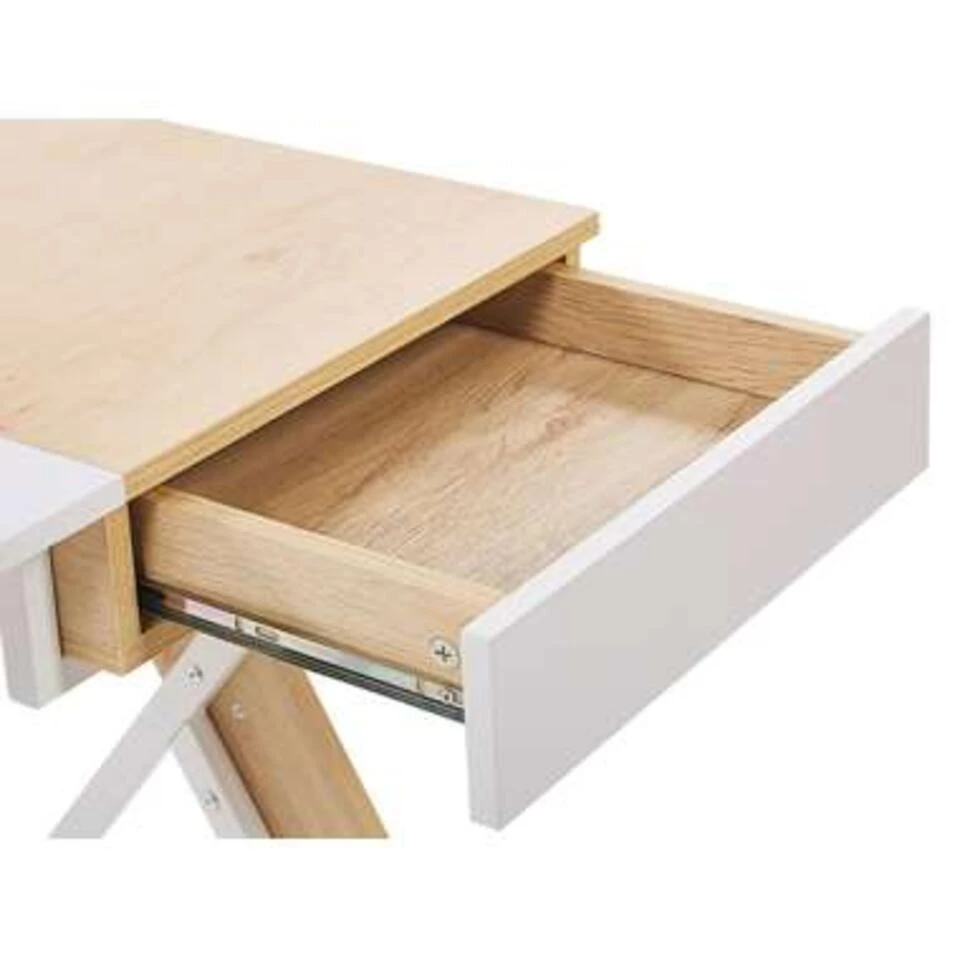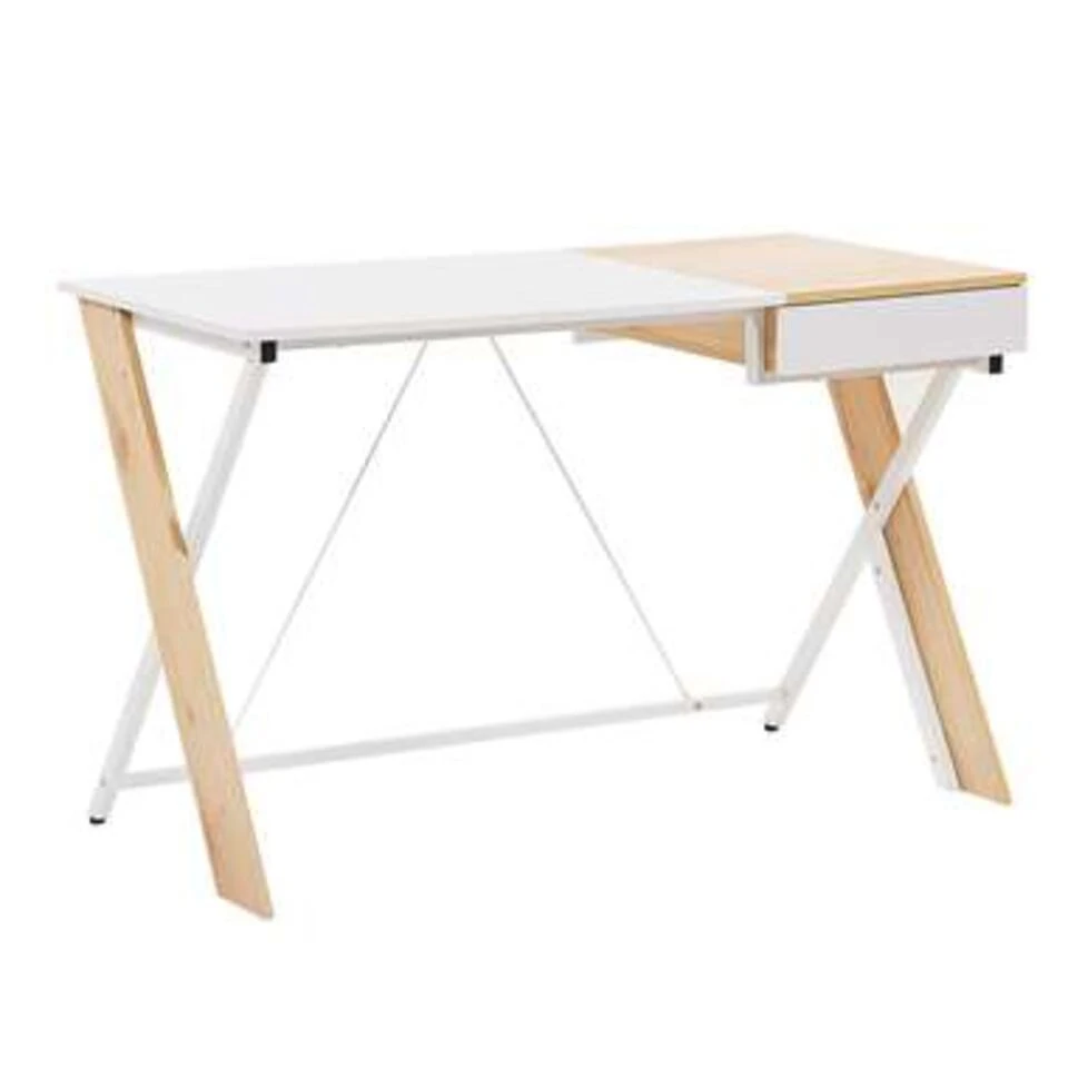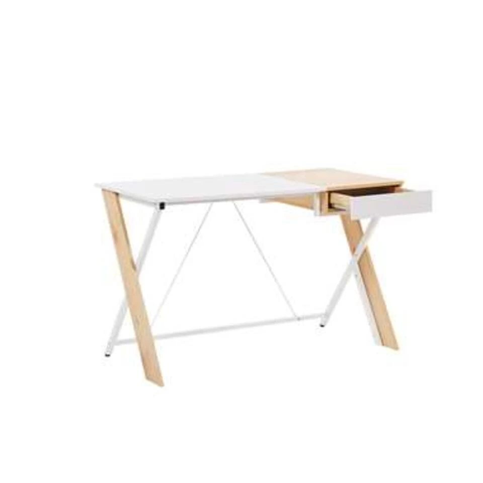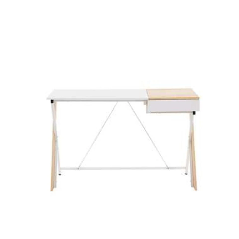 Minimalistisch, stijlvol bureau. De combinatie van MDF-hout en gepoedercoat metaal geven dit bureau een verfijnde, moderne uitstraling en zorgt voor een lichte flair in je kamer. Dankzij de compacte afmetingen kun je overal in huis een werkhoek inrichten, terwijl je genoeg ruimte hebt voor je laptop en je documenten. Daarnaast kan je schrijfgerei handig opbergen in de la.