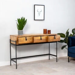 Robuuste kaptafel met industrieel ontwerp. Een stijlvolle en functionele kaptafel die perfect is voor industriële of Scandinavische inrichtingsstijlen. Dankzij de vorm is het een stabiel en stevig meubelstuk. De tafel, past goed in minimalistische, vintage of stedelijke interieurs.