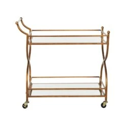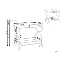 Keukentrolly, 2-laags. Maak je keuken compleet met deze trolley. Gemaakt van duurzaam metaal en goed te gebruiken tijdens feestjes met vrienden en familie. Omdat hij is voorzien van 2 ruime planken, kun je er veel drankjes of eten op zetten. Beide lagen hebben een gespiegeld oppervlak, waardoor het geheel er glamoureus uitziet. De trolly kan eenvoudig worden verplaatst dankzij de wielen.