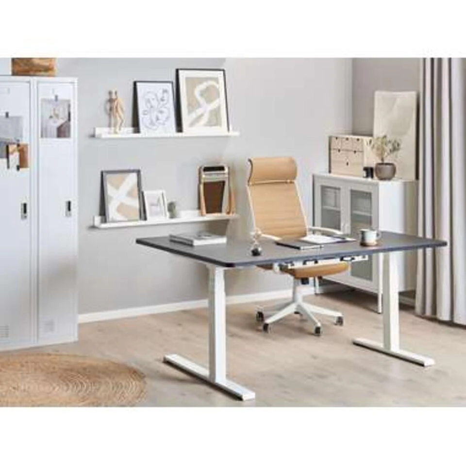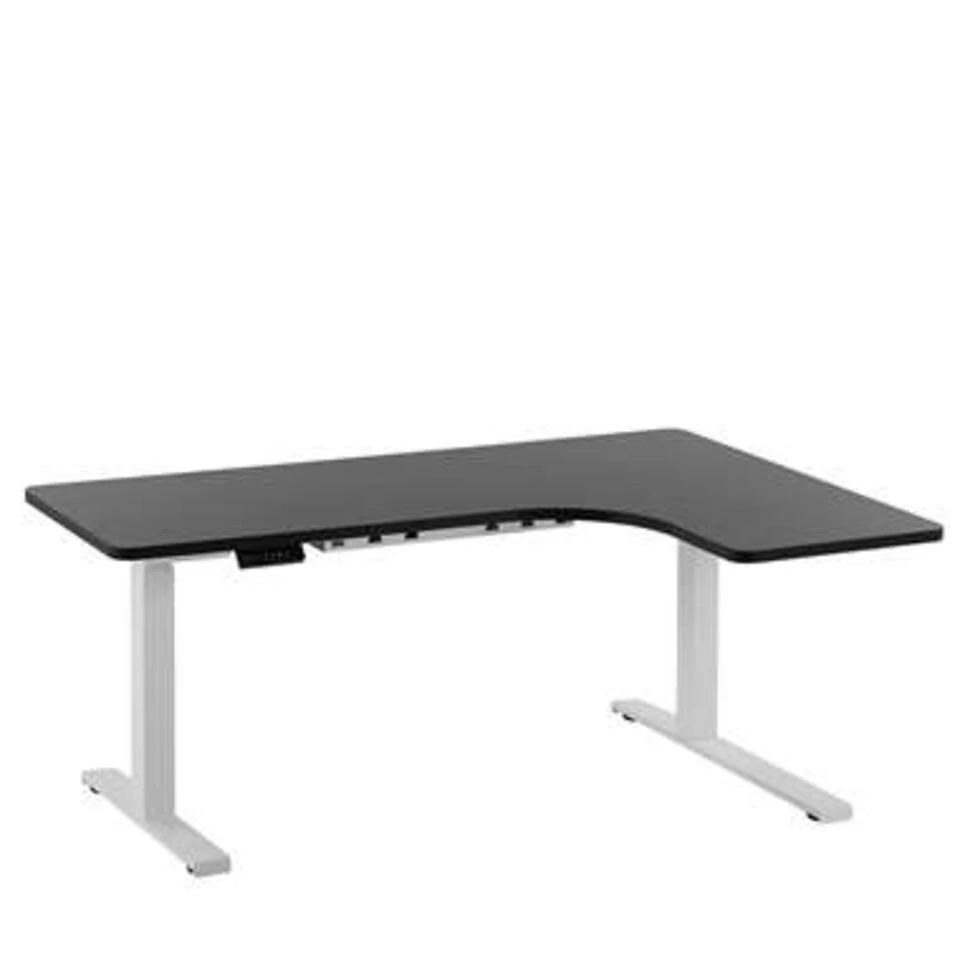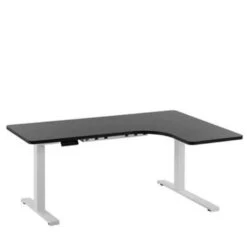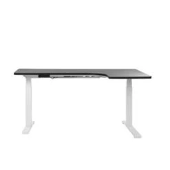 Elektrisch in hoogte verstelbaar bureau in zwart en wit. Personaliseer jouw eigen werkplek volgens jouw individuele behoeften. Met een elektrisch in hoogte verstelbaar tafelframe met telescopische poten van wit, gepoedercoat staal, kun je jouw werkplek in een handomdraai ergonomisch inrichten. Dit geeft je de mogelijkheid om zowel zittend als staand te werken. Dankzij de krachtige elektrische aandrijving kun je jouw bureau in slechts enkele seconden omtoveren in een praktisch stabureau. Met de geheugenfunctie kun je drie verschillende hoogtes opslaan. Het stevige, blad heeft een duurzame melamine coating. De brede basis van het frame zorgt voor maximale stabiliteit. Deze gecombineerde zit/sta werkplek is een verstandige investering in jouw gezondheid en productiviteit!