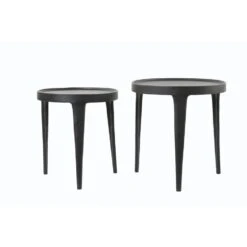 Een set van twee zwarte bijzettafels in afwijkende maat