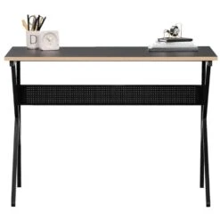 Bureau Debbey is een strak vormgegeven bureau met een industriële look. Het frame van het bureau is gemaakt van metaal. Het bureau biedt met zijn totale afmeting van 75x105x55 cm voldoende ruimte voor bijvoorbeeld een computer, diverse mappen en andere kantoorspullen.Â