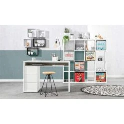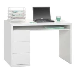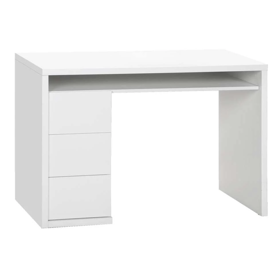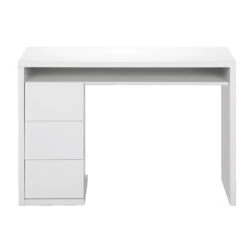 De Genua heeft een mooi eigentijds design met strakke lijnen en een hoogglanzende witte kleur. Het bureau heeft drie laden en een open vak dat gelijk loopt met het tafelblad. Handig voor bijvoorbeeld het opbergen van papieren of het toetsenbord en de muis.