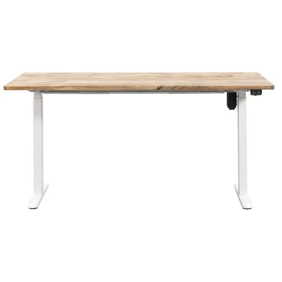 Bureau Homeworx is een eigentijds en modern zit/sta bureau. Het bureaublad is gemaakt van naturel hout en het onderstel is van wit metaal. Door de zit/sta functionaliteit creëer je zo een ergonomische werkplek die past bij jouw interieur. Het paneel om het bureau in hoogte te verstellen is zowel links als rechts te plaatsen.