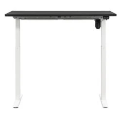 Bureau Homeworx is een eigentijds en modern zit/sta bureau. Het bureaublad is gemaakt van zwart hout en het onderstel is van wit metaal. Door de zit/sta functionaliteit creëer je zo een ergonomische werkplek die past bij jouw interieur. Het paneel om het bureau in hoogte te verstellen is zowel links als rechts te plaatsen.