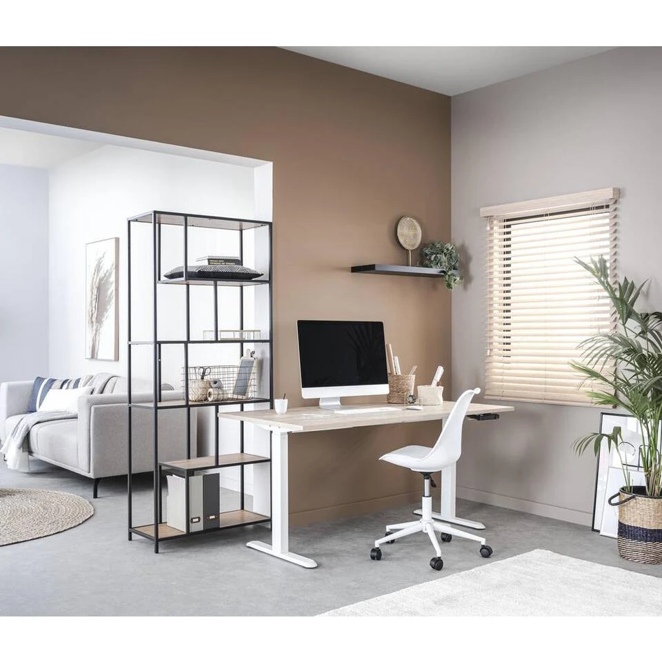 Bureau Homeworx is een eigentijds en modern zit/sta bureau. Het bureaublad is gemaakt van naturel hout en het onderstel is van wit metaal. Door de zit/sta functionaliteit creëer je zo een ergonomische werkplek die past bij jouw interieur. Het paneel om het bureau in hoogte te verstellen is zowel links als rechts te plaatsen.