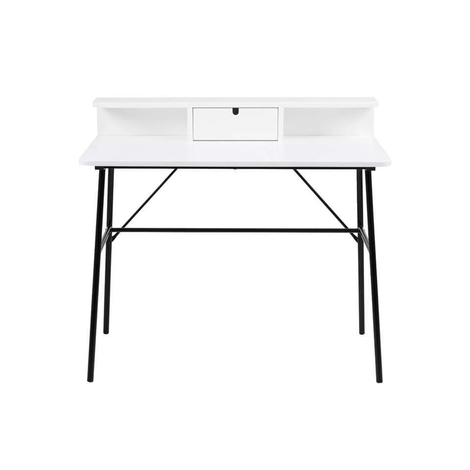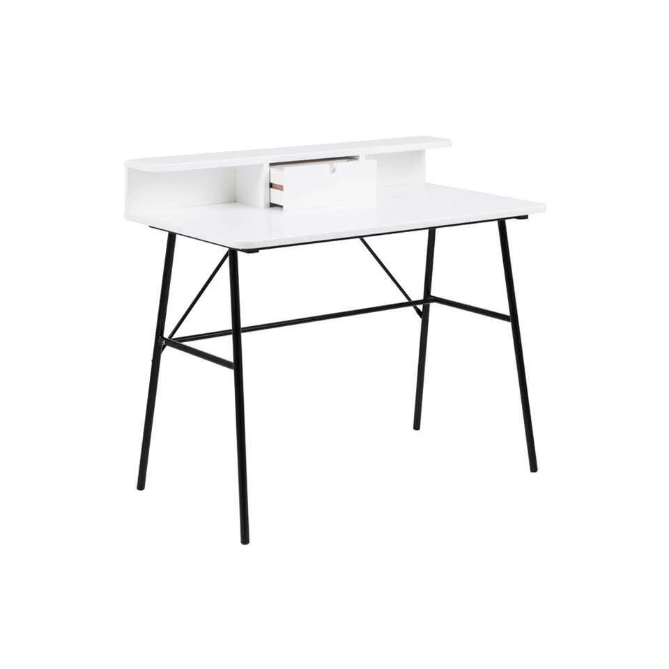 Bureau Molde is een modern bureau met een neutraal wit tafelblad en stevig zwart onderstel. Dit bureau straalt Scandinavisch design uit; eenvoudig maar enorm veel mogelijkheden. Het bureau is ideaal voor kinderen om huiswerk aan te maken, een student of voor jezelf als je een paar uurtjes thuiswerkt. Het blad van bureau Molde is gemaakt van hout en biedt genoeg ruimte voor je belangrijkste werkspullen. De minimalistische zwarte poten zijn slank maar door de constructie extra stevig. Het bureau heeft een fijne afmeting. Zet het bureau op een mooi plekje in de studeer-, werk- of kinderkamer.