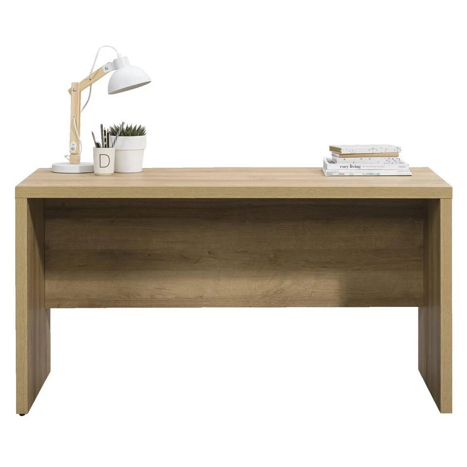 Bureau Schema is een stijlvol en praktisch bureau met een klassieke look. Het bureau is eenvoudig vormgegeven gemaakt van spaanplaat en afgewerkt met melamine. Werk je af en toe thuis? Dan is dit bureau ideaal. Het bureau heeft een elegante eikenkleur. Heb je extra opbergruimte nodig? Koop er dan een bijpassend ladeblok op wielen bij. Zo heb je in een handomdraai een complete werkplek.