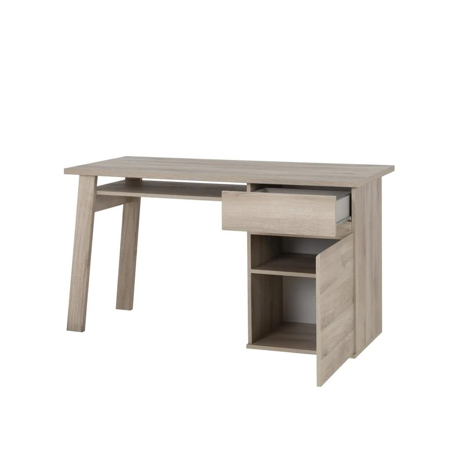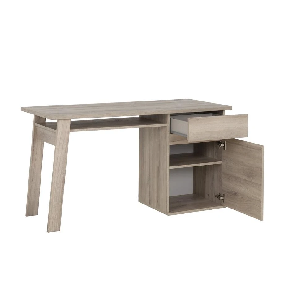 Het BALIKHAN bureau is een hoogwaardig meubelstuk dat in Frankrijk is vervaardigd. Met zijn elegante ontwerp en gestructureerde lichte eiken afwerking voegt het een vleugje verfijning toe aan uw werkruimte. Dit bureau is uitgerust met een plank onder het blad om uw documenten en kantooraccessoires op te bergen, evenals een opbergkast met een lade en een deur (met een plank achter de deur) om uw dossiers en kantoorbenodigdheden veilig op te bergen.