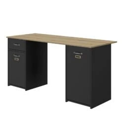 Het bureau BRISTOL met 1 lade en 2 deuren is een hoogwaardig meubelstuk dat in Frankrijk is geproduceerd. Zijn industriële stijl wordt benadrukt door zijn zwart en gestructureerd eikenhouten bi-tone, evenals zijn ABS-handvat met verouderd metalen imitatie. De zwarte ABS-poten voegen een moderne touch toe aan het geheel.