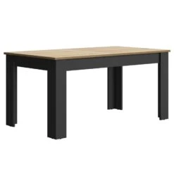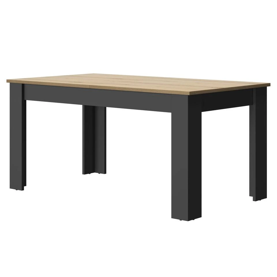 De MANCHESTER-tafel is verkrijgbaar in de kleur Black Wood-Helvezia Oak, die een vleugje verfijning aan uw interieur zal toevoegen. Met zijn afmetingen van 160 x 90 cm (220 x 90 cm met de verlenging) biedt het plaats aan maximaal 8 gasten, waardoor het een ideale keuze is voor grote gezinnen of avonden met vrienden.