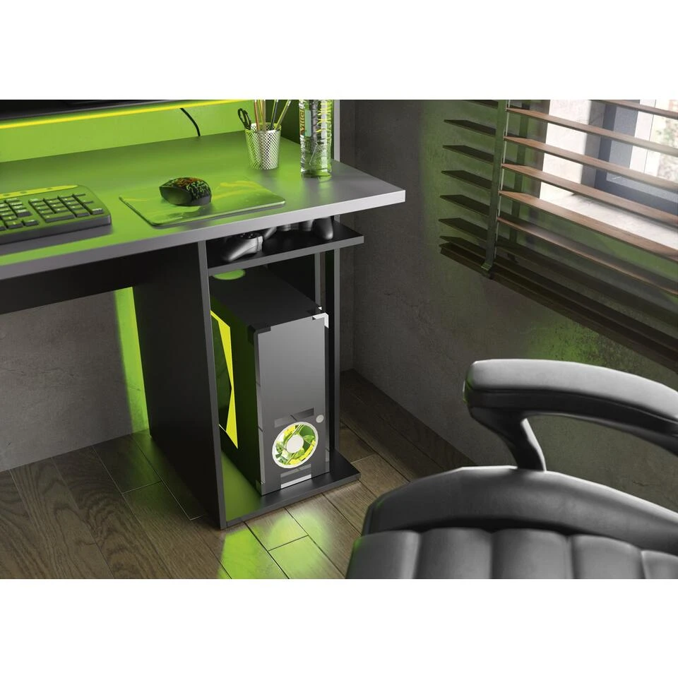 De gamer bureau STREAM is een hoogwaardig meubelstuk dat in Frankrijk is geproduceerd. Het is ontworpen om een optimale game-ervaring te bieden dankzij zijn innovatieve functies. Het melamine blad zorgt voor extra duurzaamheid, terwijl de RGB LED-verlichting met bijgeleverde afstandsbediening zorgt voor een meeslepende game-ambiance.
