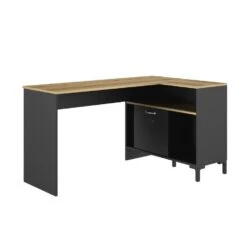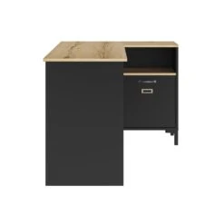De hoekbureau MANCHESTER is een hoogwaardig meubelstuk dat in Frankrijk is geproduceerd. Met zijn tweedelige industriële ontwerp in zwart en eikenhout voegt het een moderne touch toe aan uw werkruimte. De rechterhoek biedt extra ruimte om comfortabel te werken.