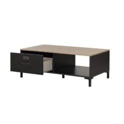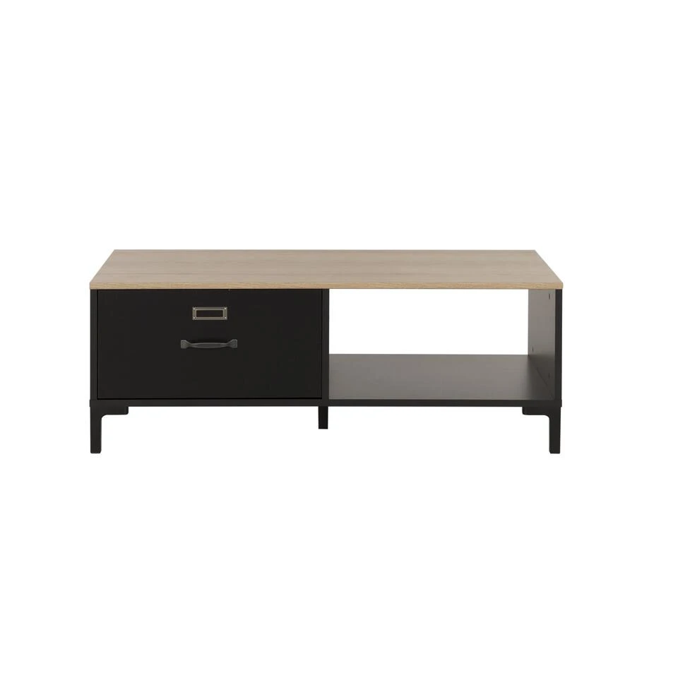 De MANCHESTER salontafel is een hoogwaardig meubelstuk gemaakt in Frankrijk. Met zijn bi-tone zwarte en eiken industriële ontwerp voegt het een vleugje moderniteit toe aan uw woonkamer. Deze salontafel is uitgerust met een lade en een opbergvak, ideaal voor het opbergen van uw tijdschriften en andere dagelijkse voorwerpen. Het metalen labelhouder op de voorkant van de lade voegt een extra stijlvolle touch toe aan deze salontafel.
