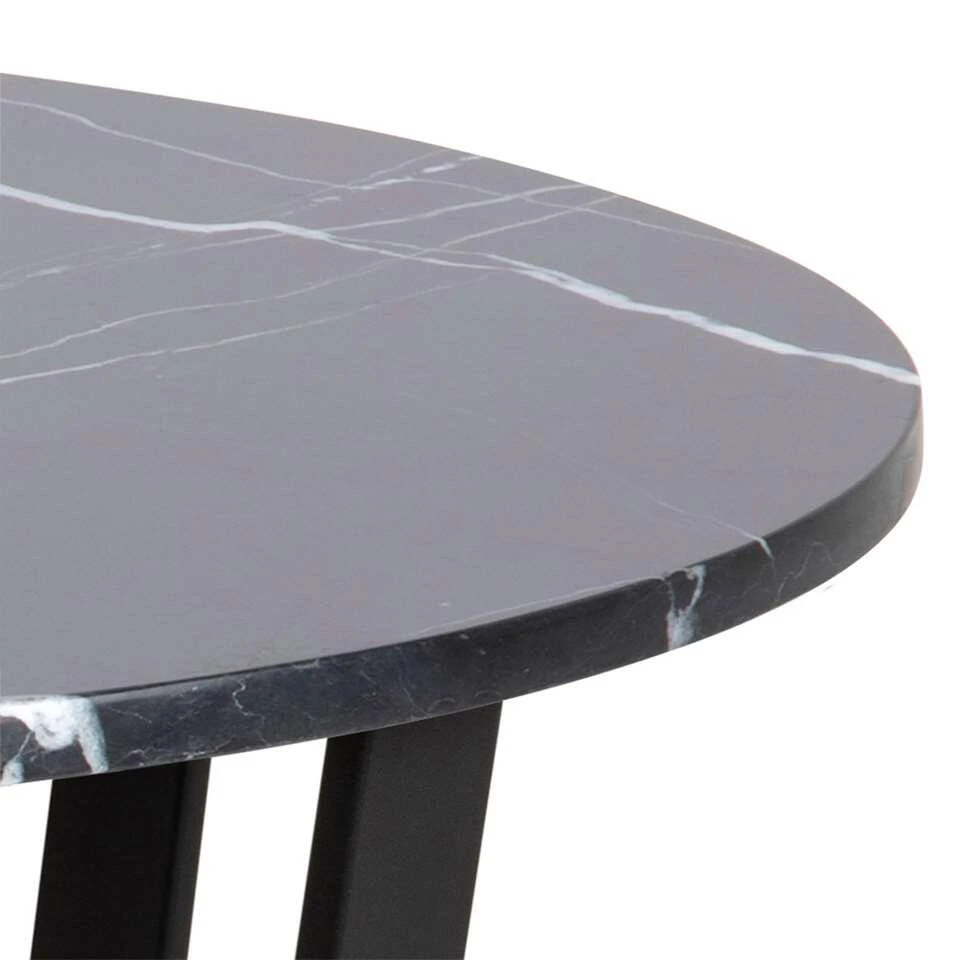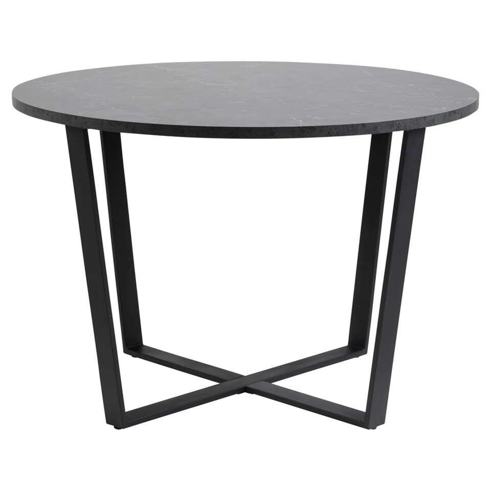 Eetkamertafel Alma is zwart en heeft een afmeting van 75xØ110 cm. Deze eetkamertafel heeft een blad van melamine marmer en een metalen frame met een opvallende look. Een ronde tafel staat erg leuk en is ideaal voor gezelschappen met een oneven aantal. Kies er eetkamerstoelen bij in een bijpassende stijl en stel zo zelf je eethoek samen. Deze tafel wordt gekenmerkt door een moderne stijl.