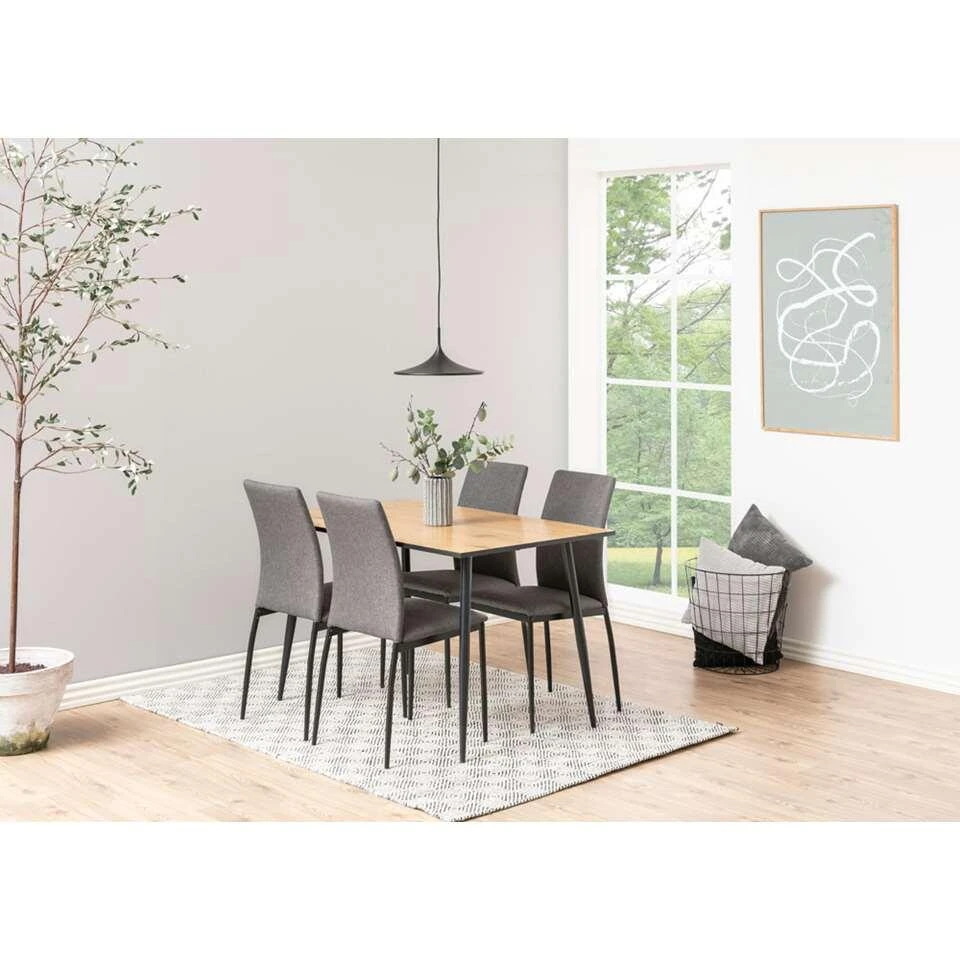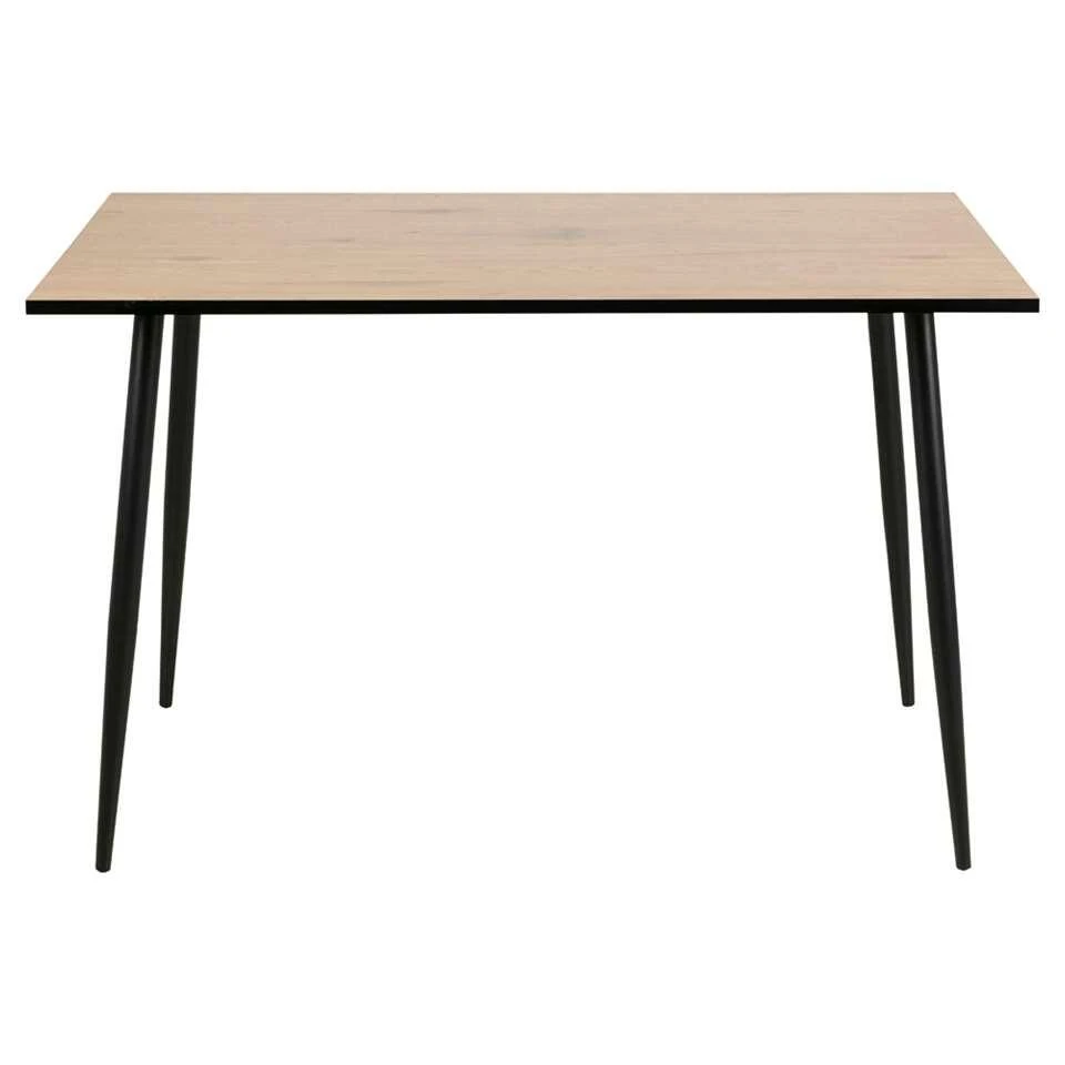 Eetkamertafel Viksmom is bruin met zwart en heeft een afmeting van 75x120x80 cm. Deze eenvoudige, rechthoekige tafel heeft een Scandinavische look. Het tafeltje heeft een metalen onderstel. Kies er zelf eetkamerstoelen bij in een bijpassende stijl en stel zo een praktische eethoek samen.