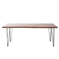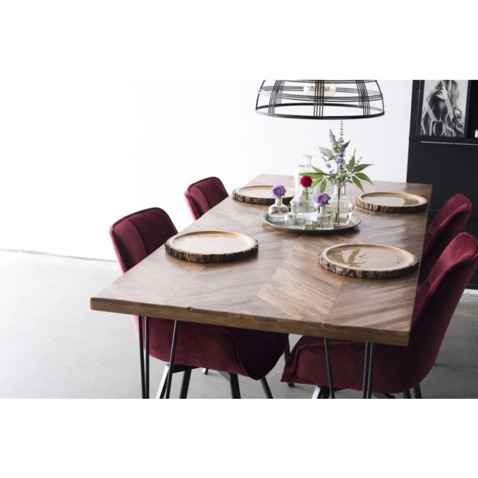 Deze eettafel Max is met zijn ruwe poten een echte eyecatcher in jouw eetkamer. Het houten blad met patroon zorgt voor een rustig geheel en past binnen elk interieur. Er is genoeg ruimte om stoelen te combineren met deze mango houten tafel. Urenlang tafelen en gezelligheid met jouw familie en vrienden wordt met deze tafel geen enkel probleem!Deze eettafel is 240 cm lang en 90 cm breed. Genoeg ruimte om aan te borrelen of om aan te werken!De ruimte tussen de tafelpoten over de lange zijde is 196cm en over de brede zijde 38cm.