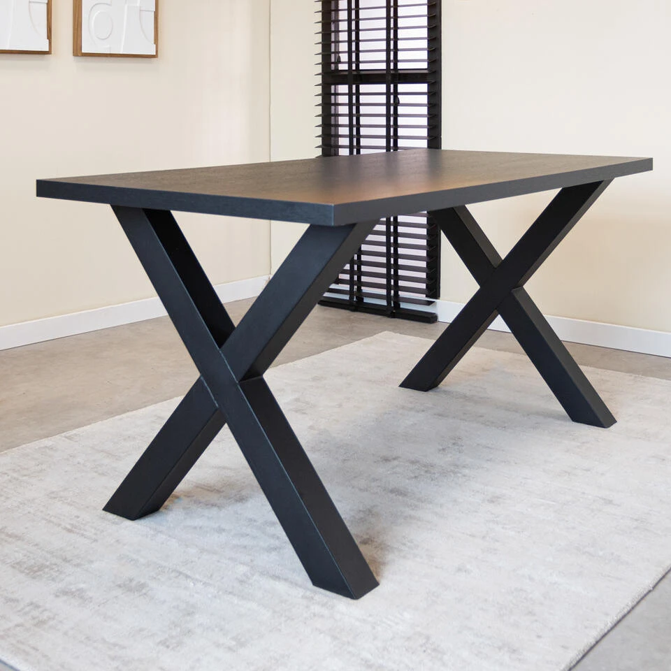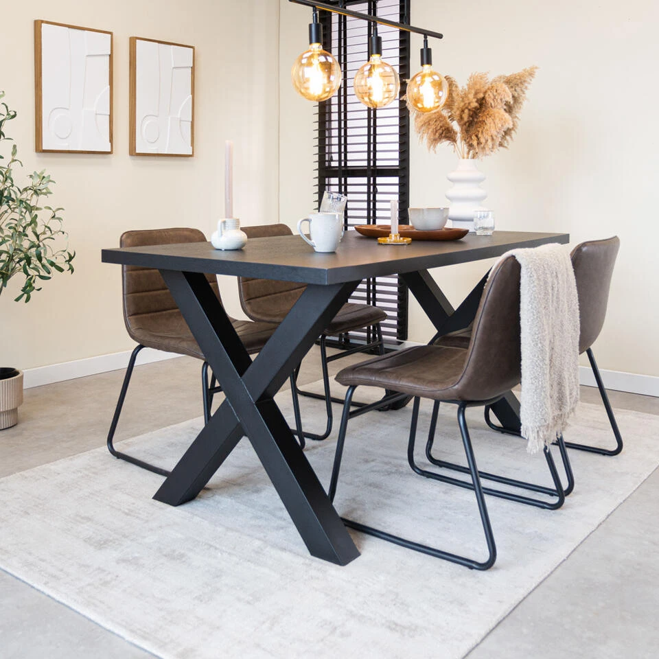 Deze prachtige rechthoekige Eettafel Lenzo geeft een stoere look aan ieder interieur! De eettafel is zwart afgewerkt en erg stevig door de brede X-poten. Geniet met het hele gezin aan deze trendy eettafel!