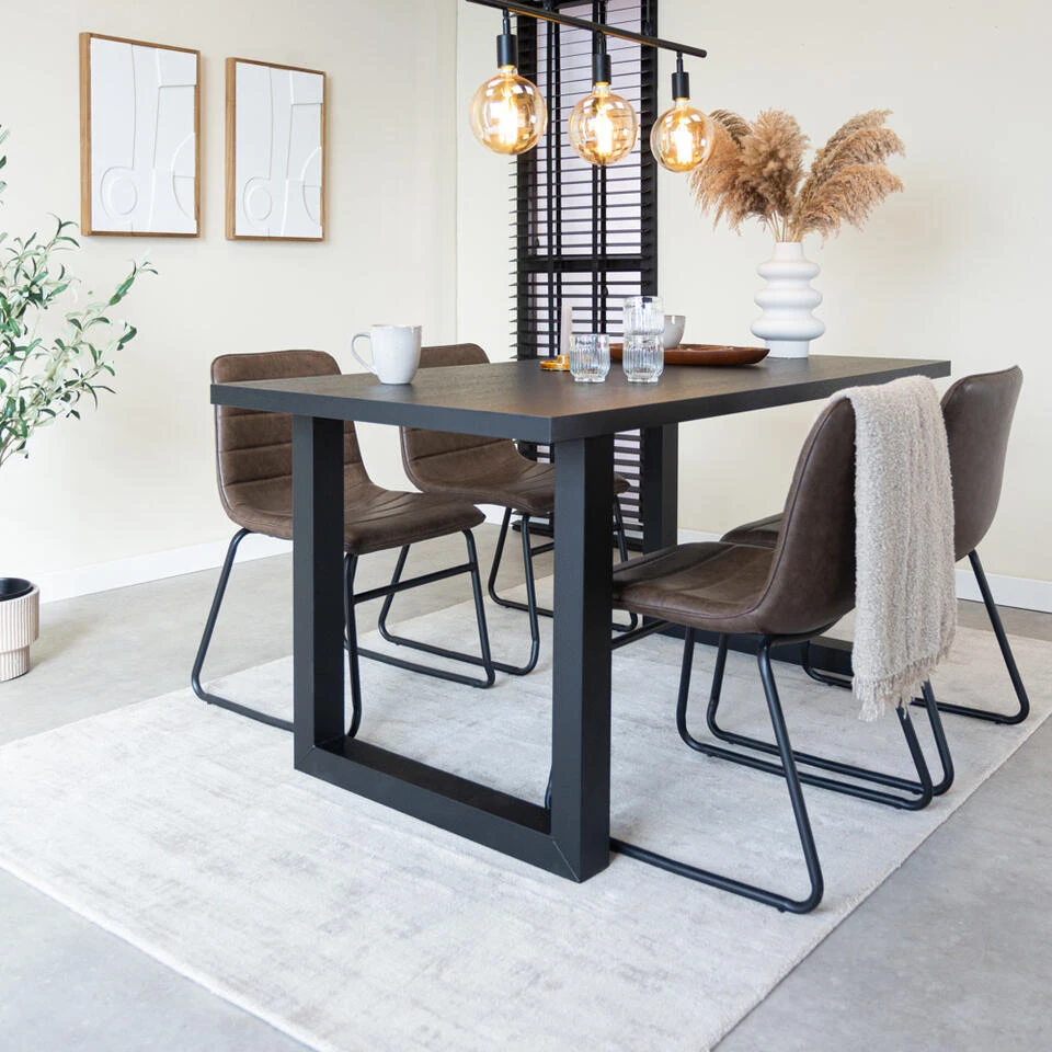 Deze prachtige rechthoekige Eettafel Lenzo geeft een stoere look aan ieder interieur! De eettafel is zwart afgewerkt en erg stevig door de brede U-poten. Geniet met het hele gezin aan deze trendy eettafel!