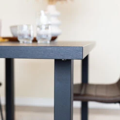Het onderstel van de eettafel is gemaakt van metaal. Het metaal zorgt voor extra stevigheid en de zwarte kleur geeft het een robuust en industrieel karakter. ​Bij dit model kun je kiezen tussen de X-poot of de U-poot.Â