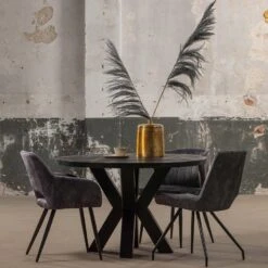 Ronde eettafels vormen de perfecte basis voor de leukste avonden, doordat gesprekken eenvoudig kunnen worden gevoerd met de hele tafel. De zwarte tafel vormt een fraai geheel en door zijn vrij compacte formaat is vast nog wel wat ruimte te vinden voor deze stoere, ronde eettafel!