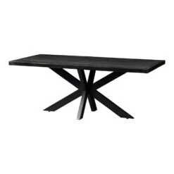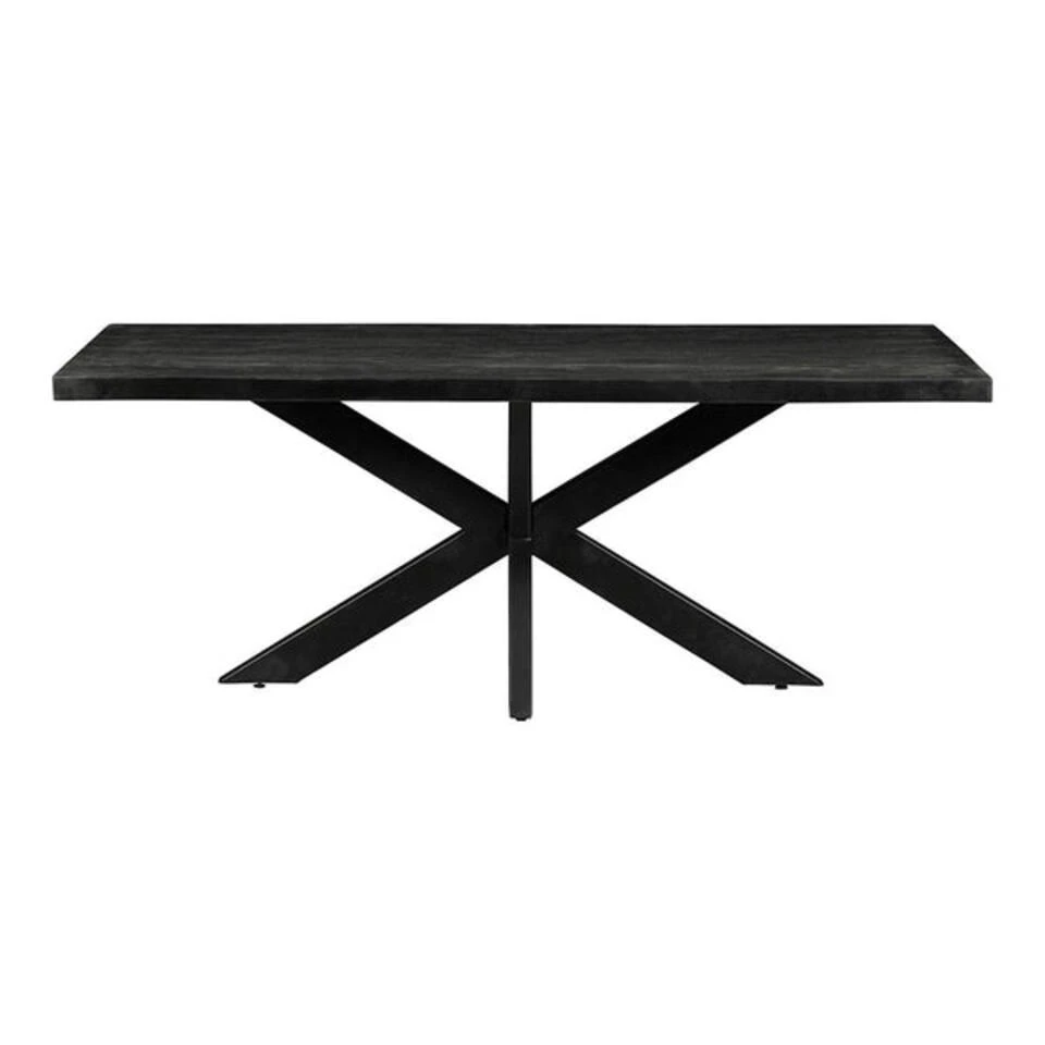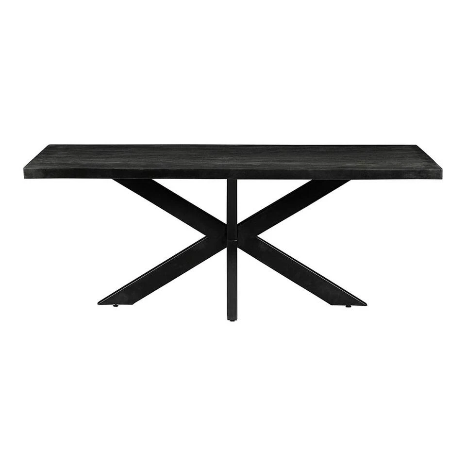 Deze 200 cm lange eettafel uit de Memphis Black-collectie is ideaal voor speciale gelegenheden! De tafel heeft een stijlvol, ruimtelijk karakter door het zwarte blad en de zwartmetalen matrixpoot. Hier wilt iedereen wel aan dineren!