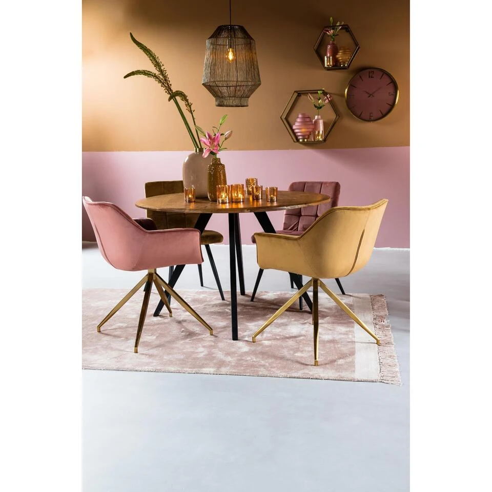 Eettafel Γ120×78 cm MIMOSO heeft een acacia houten tafelblad en zwarte tafelpoten met een ruwe afwerking. De tafel is uniek doordat deze handgemaakt is en kan daardoor oneffenheden bevatten. De afmetingen van deze tafel zijn 120 x 120 x 78 cm en hij is uitgevoerd in de kleur bruin. De ronde vorm zorgt voor een ruimtelijk gevoel in de kamer. βEen perfecte tafel voor een royaal diner.β Bij deze tafel dienen de poten nog gemonteerd te worden, na levering.