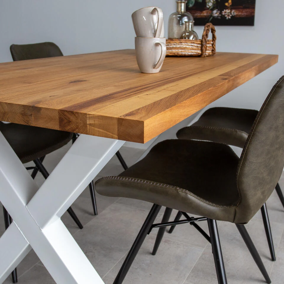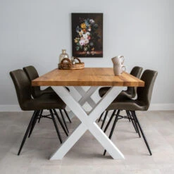 Niet elke huis of elke ruimte is even groot, daarom is eettafel Rover verkrijgbaar in verschillende maten, oplopend van 1.40 tot 2.40 meter lang. Daarnaast kun je kiezen tussen een X-poot en U-poot in het wit of zwart.