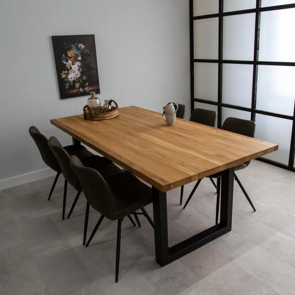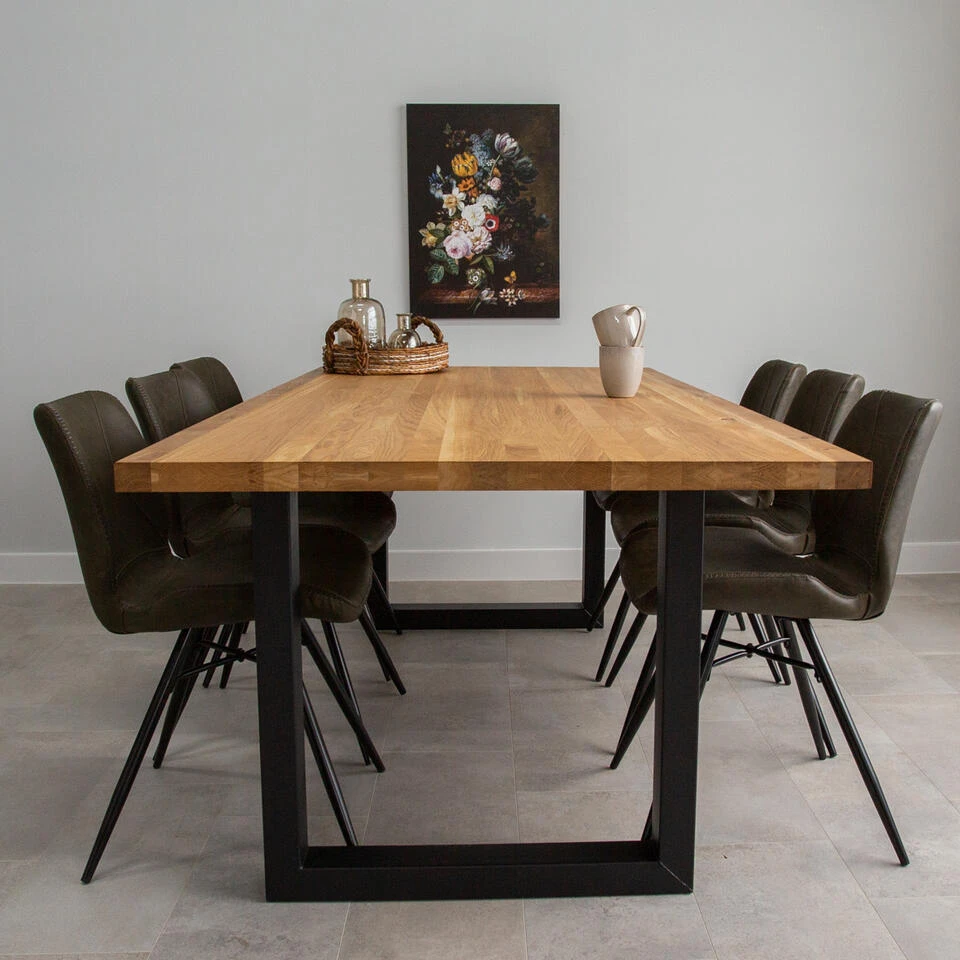 Ontdek de perfecte combinatie van stijl en duurzaamheid met onze prachtige eikenhouten eettafel met metalen frame. Een tijdloze toevoeging aan jouw interieur. De combinatie van het hout en het robuuste metalen frame, geven de tafel een stoere, industriële look. De neutrale kleuren en het tijdloze ontwerp maakt het mogelijk om de tafel moeiteloos te combineren met verschillende interieurstijlen! De eikenhouten eettafel Rover straalt warmte en karakter uit. De tafel is afgewerkt met een beschermende laag om de duurzaamheid te waarborgen en het hout te schermen tegen vlekken, zodat je jarenlang kunt genieten van deze mooie eettafel.