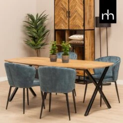 Het dunne tafelblad van 2,5 cm en de minimalistische poten geven de tafel een tijdloos en modern design. De X-poten zijn gemaakt van zwart gepoedercoat metaal.