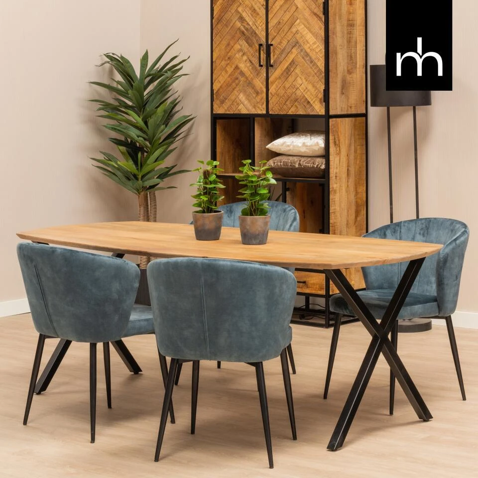 Deze fraaie eettafel is onderdeel van de Salerno-serie, een serie die zich kenmerkt door een Deens ovaal blad en kruispoten. De warme combinatie van het verfijnde mangohout en de stalen poten zullen voor iedereen een lust voor het oog zijn! Met ieder gezelschap genieten van de beste gerechten kan gemakkelijk aan deze ruime eettafel. Het warme mangohout en de stoere poten maken van deze tafel een echte sfeermaker.