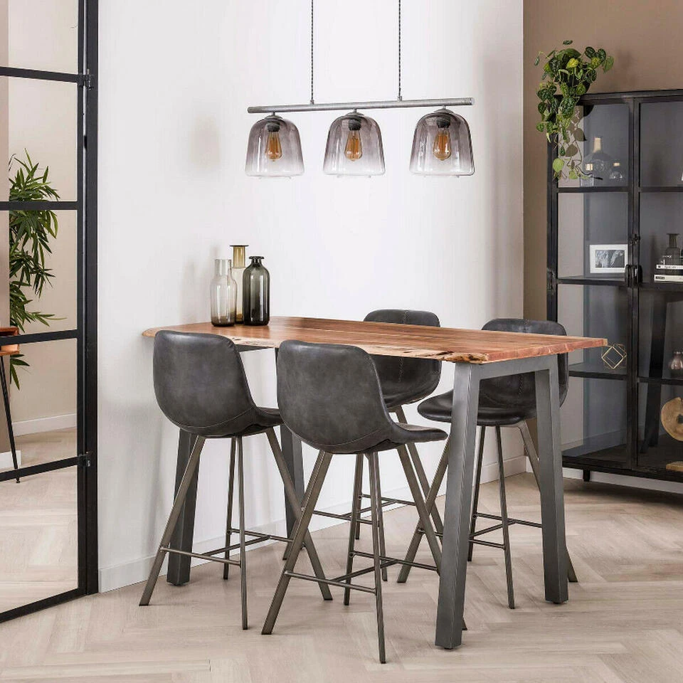 Transformeer uw eetkamer of woonkeuken met deze moderne en stoere bartafel Elias met een afmeting van 147×80 cm! Deze tafel valt op dankzij zijn tafelblad, dat gemaakt is van stevig acaciahout met een dikte van 25 mm en heeft een gave boomstamvorm. Om dit tafelblad helemaal af te maken is hij blank afgelakt, wat bescherming biedt tegen vocht en vuil. Het onderstel bestaat uit twee grijze poten die gemaakt zijn van gepoedercoat staal met een dikte van 6 cm. Elias is ook verkrijgbaar als eetkamertafel met een breedte van 180, 210 of 240 cm.