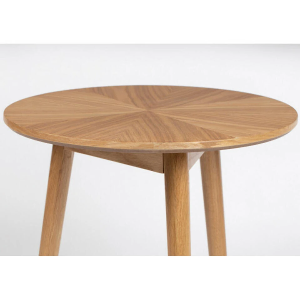 Natuurlijk, stijlvol en met een retro touch: zo wordt bijzettafel Fabio het beste omschreven! Deze leuke tafel heeft een afmeting van B50xD50xH50 cm en komt uit de collectie van het woonmerk Puur. Hij is voorzien van een rond tafelblad met een dikte van 18 mm, welke is uitgevoerd in hoogwaardig MDF met een afwerking in naturelkleurig eikenfineer. Onder dit blad bevinden zich drie stevige eikenhouten poten met een naturelkleur als afwerking. Plaats bijzettafel Fabio in de woonkamer of hal en combineer hem ook met de matchende Fabio salontafel en eettafel voor één geheel in uw interieur. Deze tafel is tevens verkrijgbaar in het zwart. Maximaal draaggewicht: 20 kg.