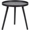 Deze bijzettafel bestaat uit een set van 2. De tafeltjes zijn beide voorzien van een rond blad gemaakt van acaciahout en een frame van zwart gepoedercoat metaal. Het driepotige frame is aan de onderzijde aan elkaar verbonden. Dit zorgt voor een goede stabiliteit van de bijzettafels. Aangezien de hoogte van de tafeltjes ongeveer 5 centimeter verschilt, kunnen ze leuk onder elkaar geplaatst worden.