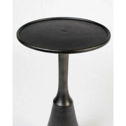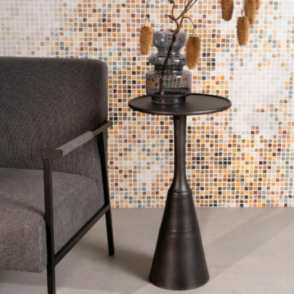 Geniet van het unieke design van bijzettafel Noah! Deze mooie bijzettafel komt uit de collectie van het woonmerk Puur en heeft een afmeting van Ø35xH65 cm. Hij is voorzien van een rond aluminium tafelblad met een dikte van 15 mm en een antieke zwarte kleur als afwerking. Onder dit blad bevindt zich het speelse onderstel, welke eenzelfde ruwe afwerking heeft gekregen als het tafelblad. Opvallend aan het design van dit tafeltje is de subtiel opstaande rand en de prachtige vorm van het onderstel. Plaats bijzettafel Noah in de woonkamer, slaapkamer of in de hal en combineer hem ook met de grotere salontafel Mason. Deze tafel is tevens verkrijgbaar in het antiek messing. Maximaal draaggewicht: 10 kg.