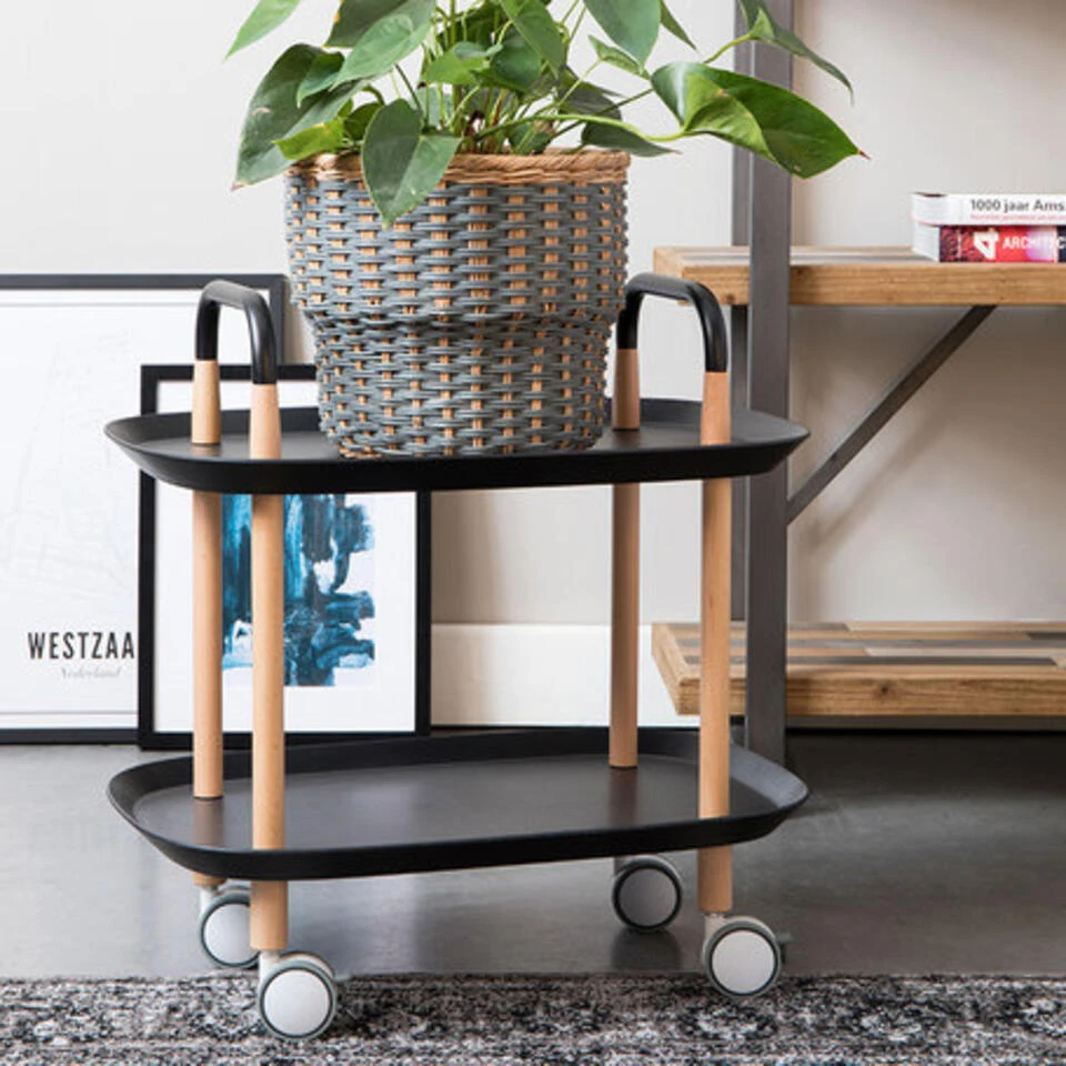 De Cruiser is een handige en hippe trolley die je overal leuk neer kan zetten. Kan leuk als bijzettafeltje of om spulletjes op te bergen. De twee plankjes zijn gemaakt van polypropyleen, de basis van beukenhout met 2 metalen handgrepen. De trolley heeft vier wielen waarvan er twee blokkeerbaar zijn. De Cruiser is verkrijgbaar in de kleuren zwart, grijs en wit.