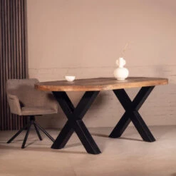 De combinatie van het metalen frame en het houten blad geeft deze tafel een stoer en robuust uiterlijk. De tafel is in elk industrieel interieur een goede match, maar ook heel goed te combineren met vele andere stijlen. Met eettafel Didier kan je gemakkelijk met 6 personen ontbijten, lunchen of heerlijk dineren. Is dit dé eettafel voor jou? Bestel eettafel Didier dan nu direct online bij ! Is dit niet de eettafel voor jou? Bekijk dan eens onze andere eettafels. Alle producten worden gemaakt van natuurlijk houtmateriaal waardoor elk meubelstuk zijn eigen unieke houtstructuur heeft. Hierdoor kan het voorkomen dat het product niet exact hetzelfde is als op de productafbeelding.