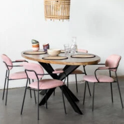Deze eettafel is een echte eyecatcher in jouw eetkamer. Het houten mango blad met patroon zorgt voor een rustig geheel dat binnen elk interieur past. Er is genoeg ruimte om stoelen te combineren met deze mango houten tafel. Urenlang tafelen en gezelligheid met jouw familie en vrienden wordt met deze tafel geen enkel probleem.
