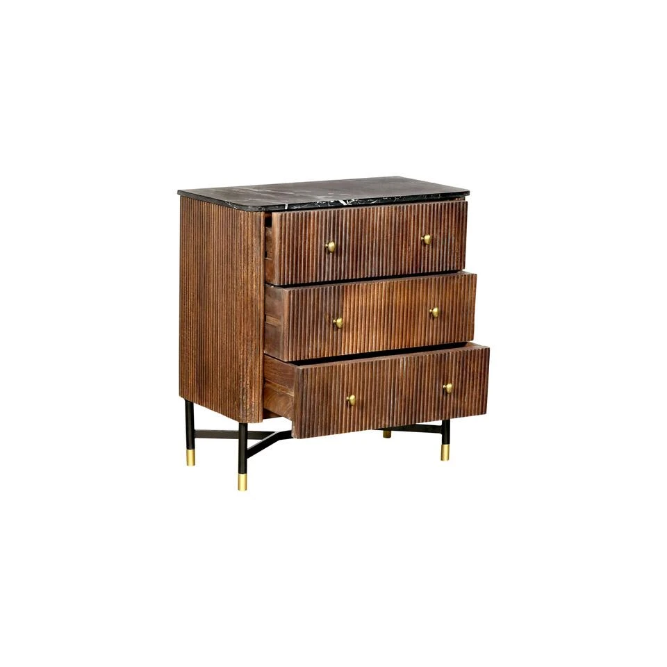 Sidetable Japandi maakt van een praktische oplossing een stijlvol geheel. Achter de prachtige, decoratie lades verschuilt zich namelijk een royale opbergruimte waar je de spullen die je liever niet in het zich hebt eenvoudig kunt opbergen. Zo stijlvol als Japandi is, zijn er ook een aantal gouden details aanwezig waardoor er een mooi contrast ontstaat met het mangohout en marmeren top. Deze eigenschappen typeren Japandi van een retro-modern design. Dankzij deze beauty heeft Japandi weinig nodig om vele interieurs te laten stralen. Sidetable Japandi kopen bij Is dit de sidetable voor jou? Bestel sidetable Japandi dan nu direct online bij !