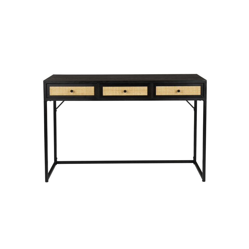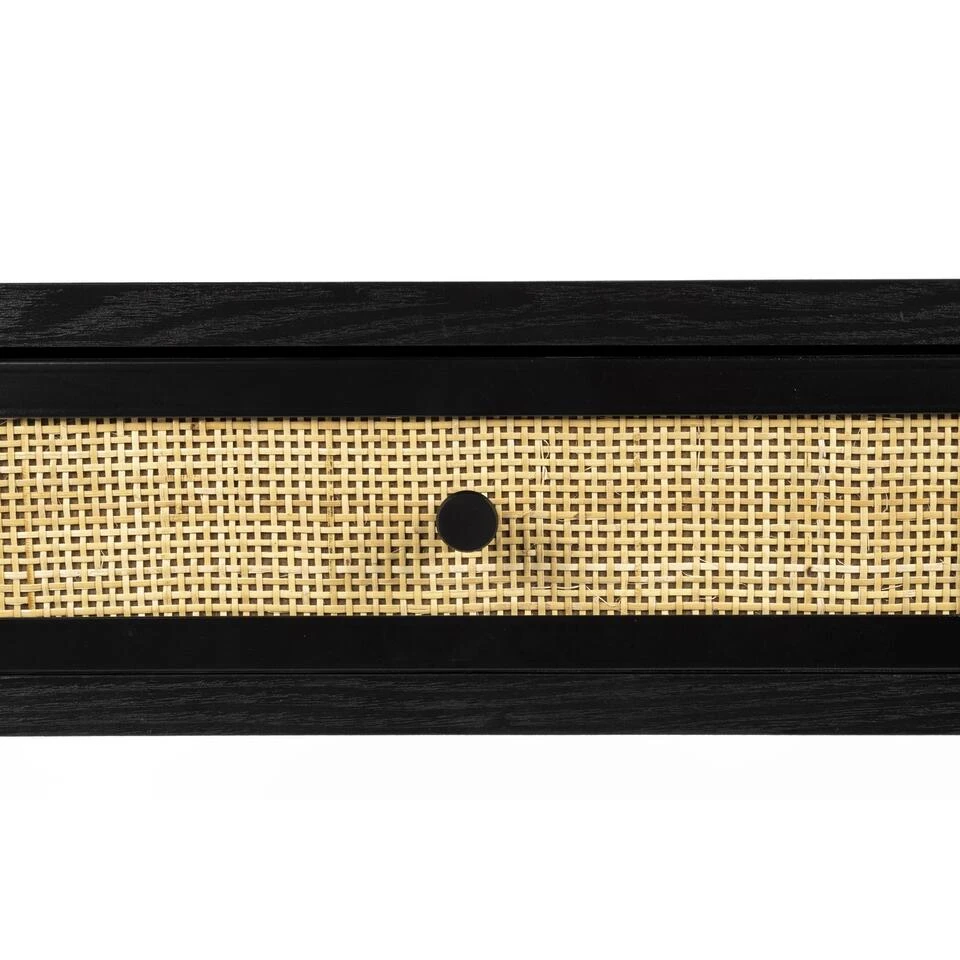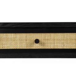 De Sidetable Guuji komt uit de collectie van ons eigen merk Woonmade. De sidetable heeft een gelakte afwerking van MDF hout met natuurlijke rotan webbing frontjes van de lades. Het onderstel is gemaakt van zwart gepoedercoat metaal. Deze sidetable heeft 3 lades en biedt daarom genoeg plaats om spullen op te bergen die je liever niet in het zicht hebt. Bekijk de andere meubels uit de Guuij collectie en maak een leuke combinatie! Sidetable Guuji – Giga Meubel. Is dit het artikel voor jou? Bestel Sidetable Guuji dan nu direct!