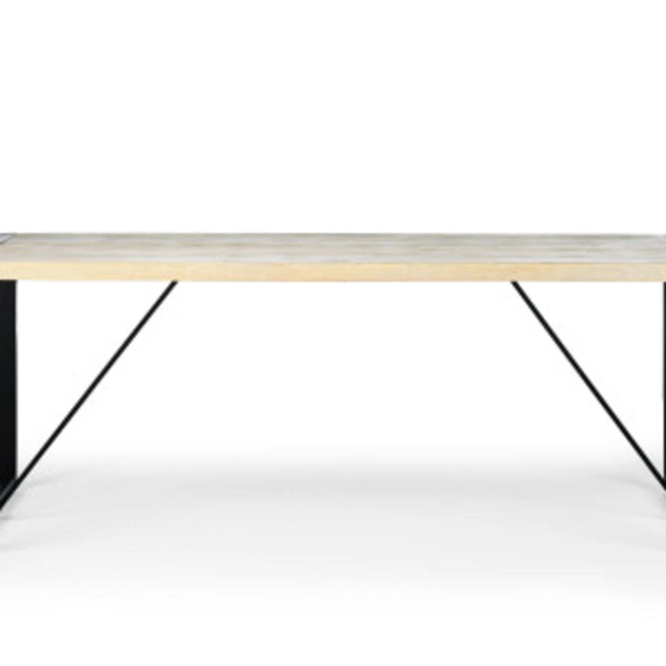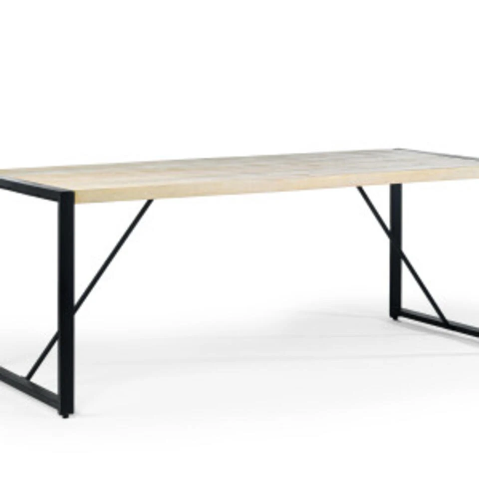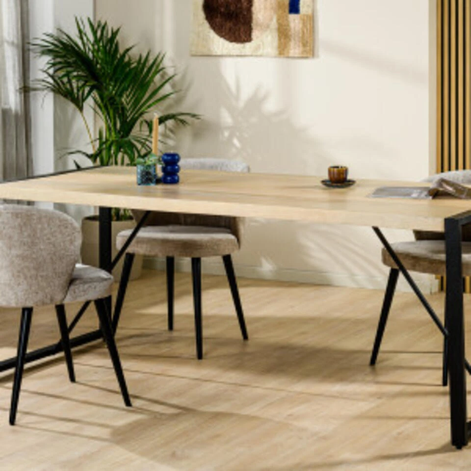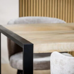 Deze trendy eetkamertafel is uitgevoerd in kwalitatief mango hout en een zwart metalen onderstel. Het robuuste onderstel is gemaakt van zwart gepoedercoat metaal. Het blad is uitgesneden in een rechthoekige vorm en het metalen frame bedekt de zijkant van de tafel dit geeft de tafel een stoere look. De combinatie van het elegante blad en het stoere onderstel zorgt ervoor dat de tafel in veel verschillende stijlen tot zijn recht komt. Deze tafel zorgt ervoor dat tafelen nog leuker wordt!