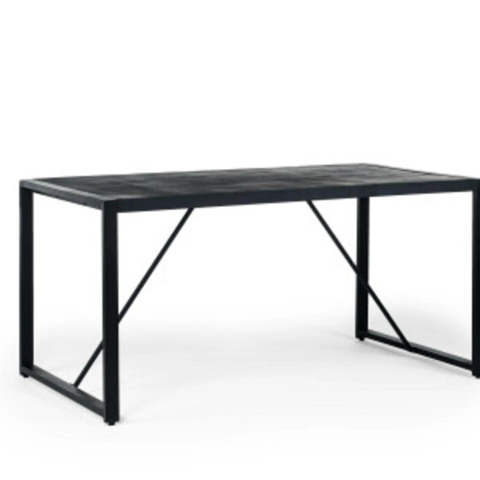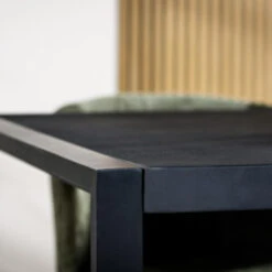 Deze trendy zwarte eetkamertafel is uitgevoerd in kwalitatief mango hout en een zwart metalen onderstel. Het robuuste onderstel is gemaakt van zwart gepoedercoat metaal. Het blad is uitgesneden in een rechthoekige vorm en het metalen frame bedekt de zijkant van de tafel dit geeft de tafel een stoere look. De combinatie van het elegante blad en het stoere onderstel zorgt ervoor dat de tafel in veel verschillende stijlen tot zijn recht komt. Deze tafel zorgt ervoor dat tafelen nog leuker wordt!